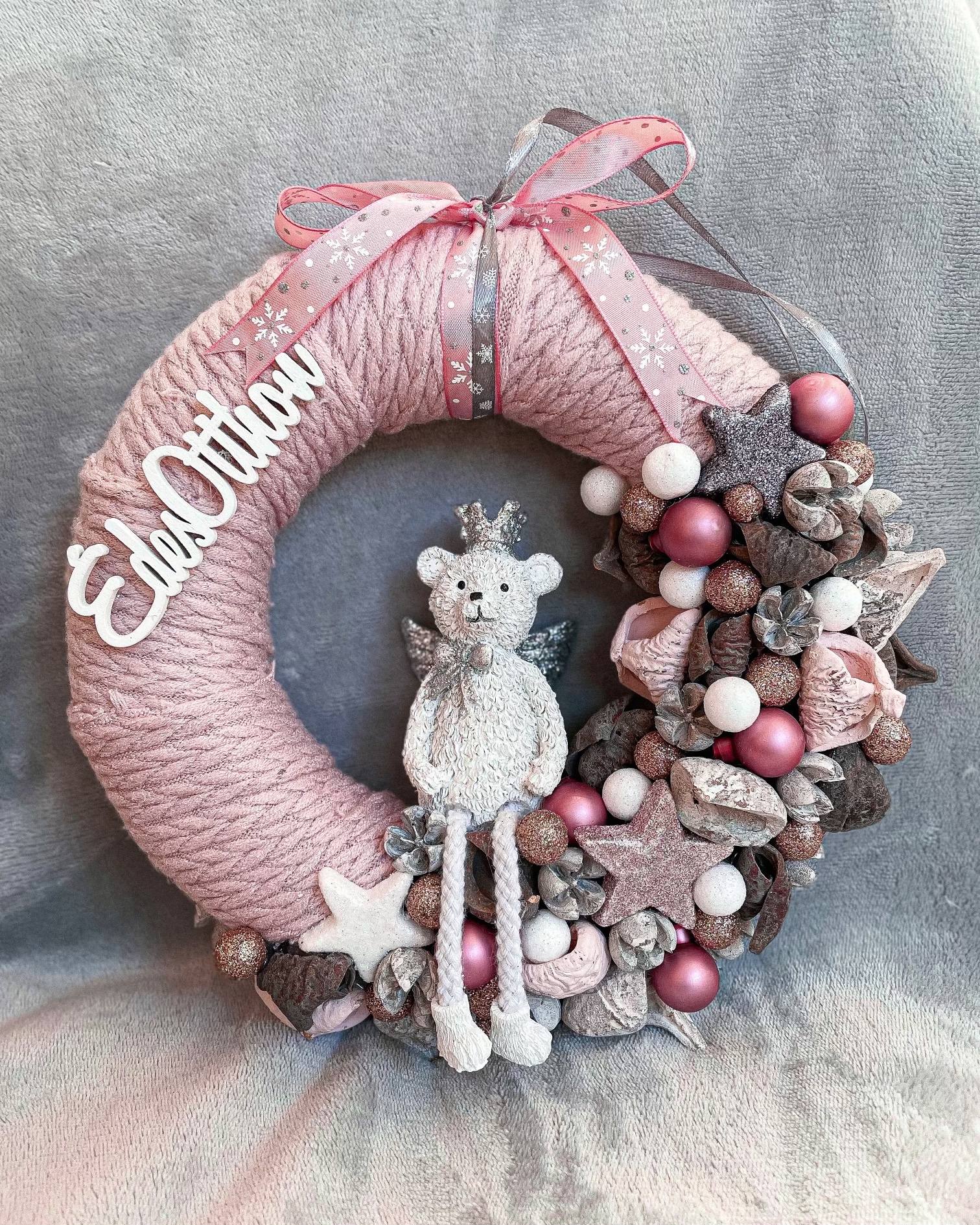 Rózsaszín macis ajtódísz/kopogtató